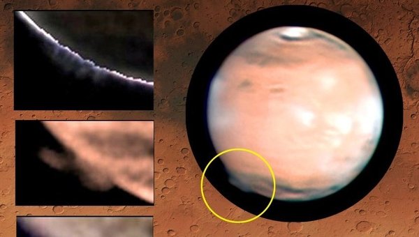 Астрономы случайным образом обнаружили на архивных снимках Марса загадочное гигантское облако, пролетавшее над южными широтами Красной планеты на рекордной высоте в 250 километров, где атмосферы практически нет.