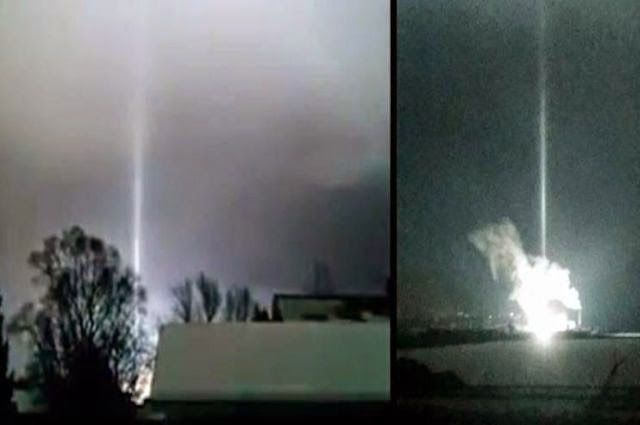 Странные электрические феномены не всегда удается объяснить обычным образом. Изображения светового пучка над электростанцией Эсканаба, штат Мичиган 2 февраля 2015.