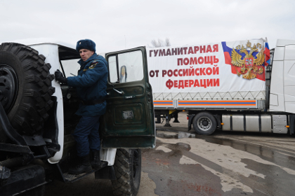 Автомобильная колонна МЧС России с гуманитарной помощью для семей шахтеров, погибших и пострадавших при аварии на шахте им. Засядько, а также жителей Донецка, пересекла границу и следует по территории Донецкой области. Об этом ТАСС сообщили в Национальном центре управления в кризисных ситуациях (НЦУКС) МЧС России.