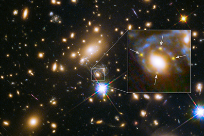 Астрофизики из США, Дании, Франции, Италии и Австралии четыре раза наблюдали вспышку одной и той же сверхновой. Ее изображение сформировало так называемый Крест Эйнштейна. Результаты своих исследований авторы опубликовали в журнале Science, а кратко с ними можно ознакомиться на сайте Калифорнийского университета в Беркли.