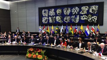 Союз южноамериканских наций (УНАСУР) обратился в субботу к США с требованием отменить санкции, введенные этой страной против Венесуэлы, говорится в декларации по итогам состоявшейся в Эквадоре встречи глав МИД этой организации.