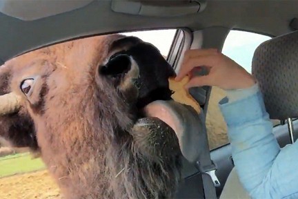 Более миллиона просмотров за несколько дней набрал на YouTube ролик, героем которого стал любвеобильный буйвол, попытавшийся «поцеловать» женщину, предложившую ему вкусное угощение. В течение всех тридцати секунд, что длится запись, копытное движется рядом с автомобилем, где находятся оператор и его спутница. Животное заглядывает в окно машины и получает угощение. Так повторяется несколько раз.