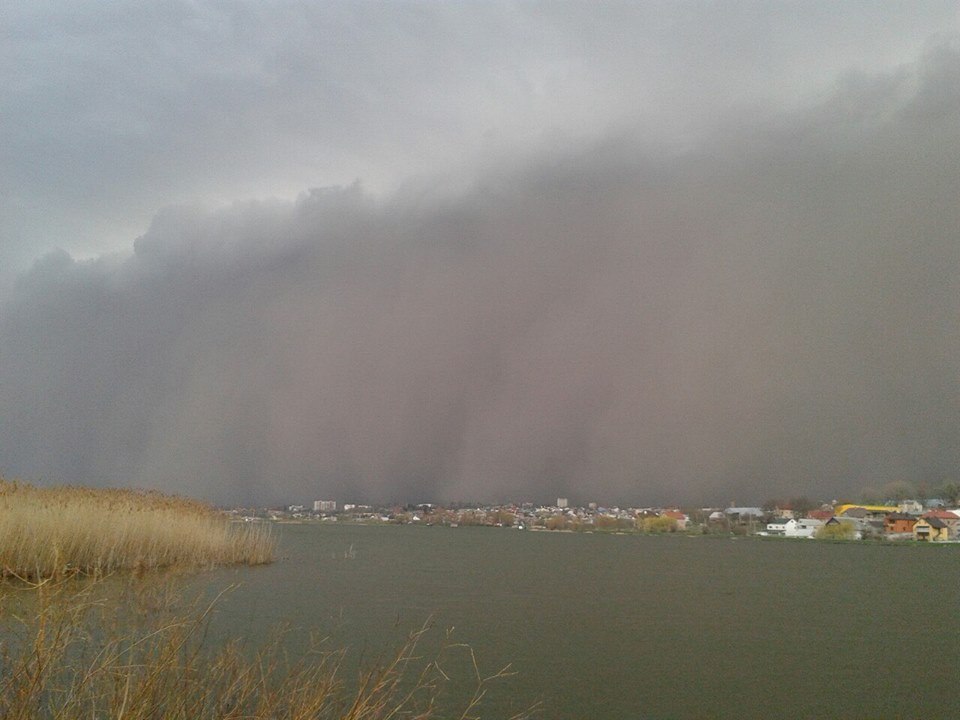 Настоящая песчаная буря налетела на город Хмельницкий. Редкое для этого региона явление попало на камеру наблюдения. На видео можно рассмотреть, как сильный ветер чуть не сносит с моста людей и транспорт.