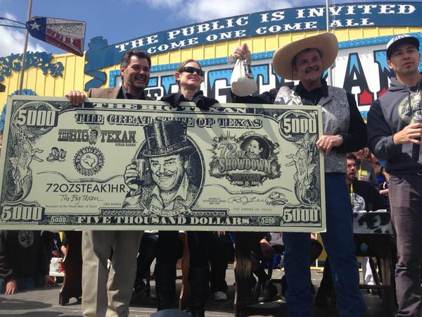 Соревнования проходили в ресторане The Big Texan в штате Техас. Мать четырех детей Молли Шайлер смогла побить сразу несколько собственных рекордов, установленных в прошлом. Возле заведения, где обедала Молли, 19 апреля собрались сотни желающих посмотреть, как женщина расправится с тремя стейками, тремя порциями салата, запеченным картофелем, рулетом с маслом и коктейлем из креветок.