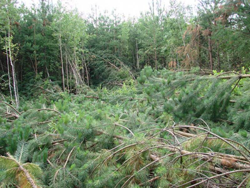 Участок леса возле посёлка Садового Сосновского района Челябинской области, где по неизвестной причине произошёл вывал деревьев, обнаружил краевед Юрий Завьялов.